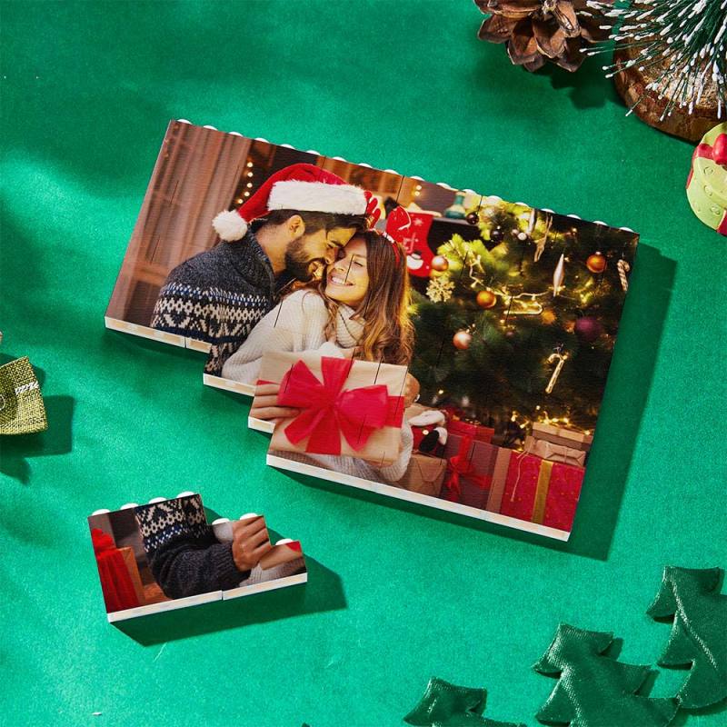 Les Cadeaux De Noël Ont Personnalisé La Forme Carrée Faite Sur Commande De Bloc De Photo De Brique De Bâtiment - VisageChaussettes
