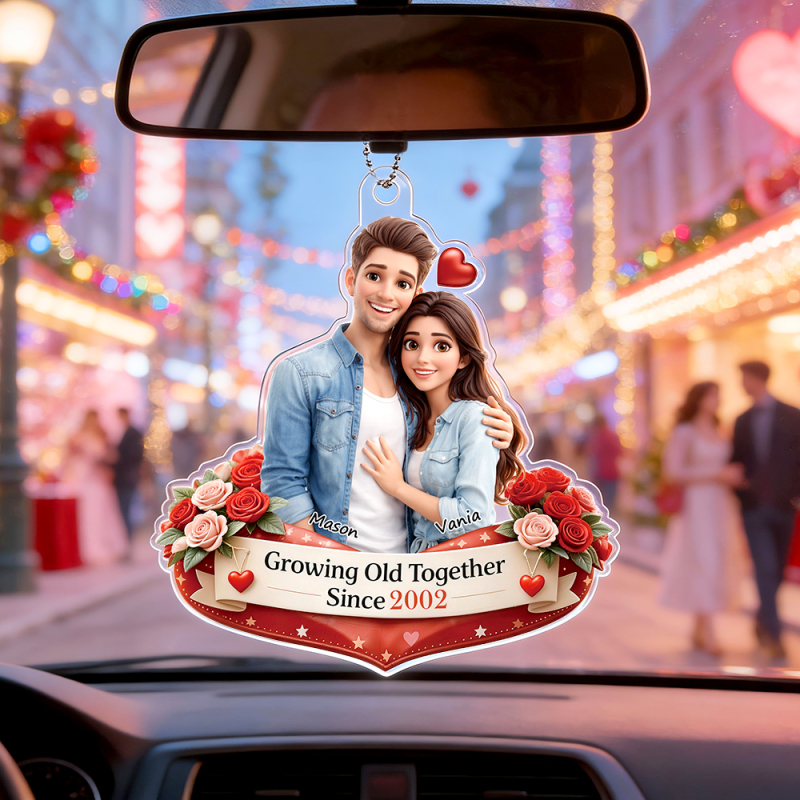 Cadeau De Saint-valentin Personnalisé En Acrylique Avec Cintre Pour Voiture : Photo De Dessin Animé Personnalisée Pour Petit Ami, Petite Amie, Famille Et Amoureux.