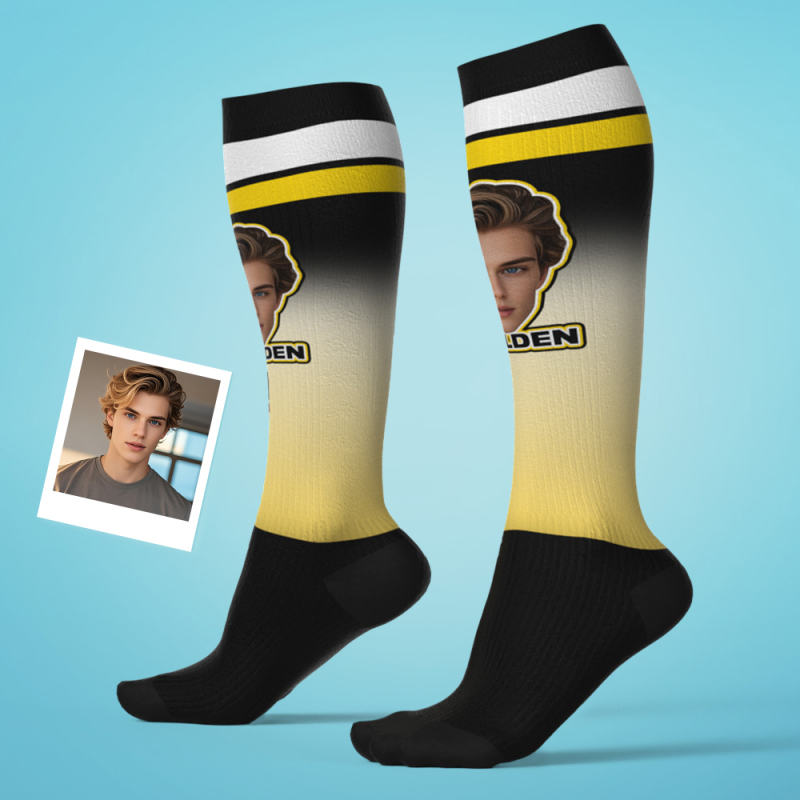 Chaussettes Hautes Athlétiques Personnalisées, Chaussettes Hautes Dégradées De Couleurs, Chaussettes De Compression Personnalisées, Chaussettes Hautes Visage Et Texte