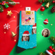 Chaussettes De Noël Personnalisées Rose Clair Avec Photo Du Père Noël, Chaussettes De Noël Personnalisées, Cadeau Pour Couple En Famille