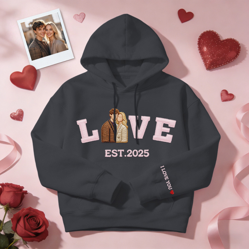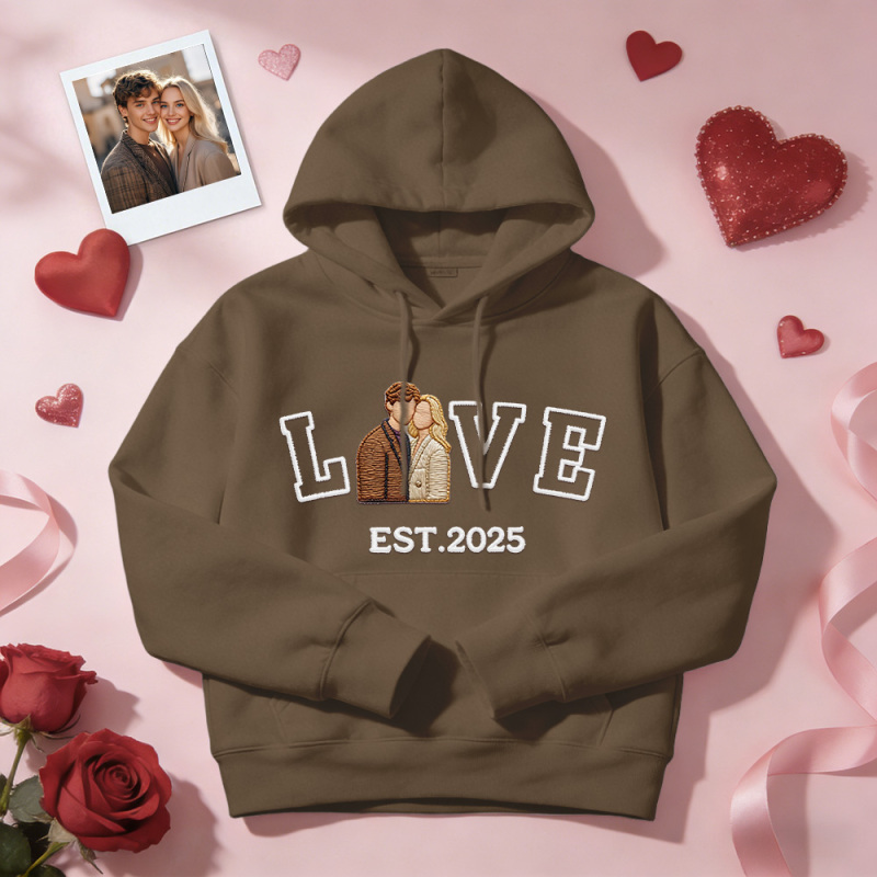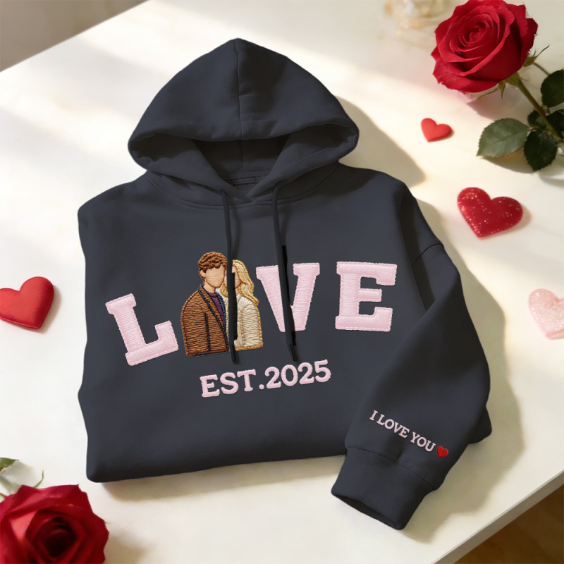 Sweat-shirt/sweat À Capuche Brodé Personnalisé Avec Photo De Couple « amour » Année De Naissance