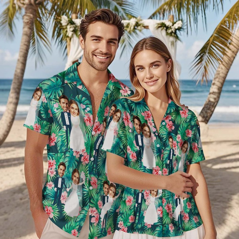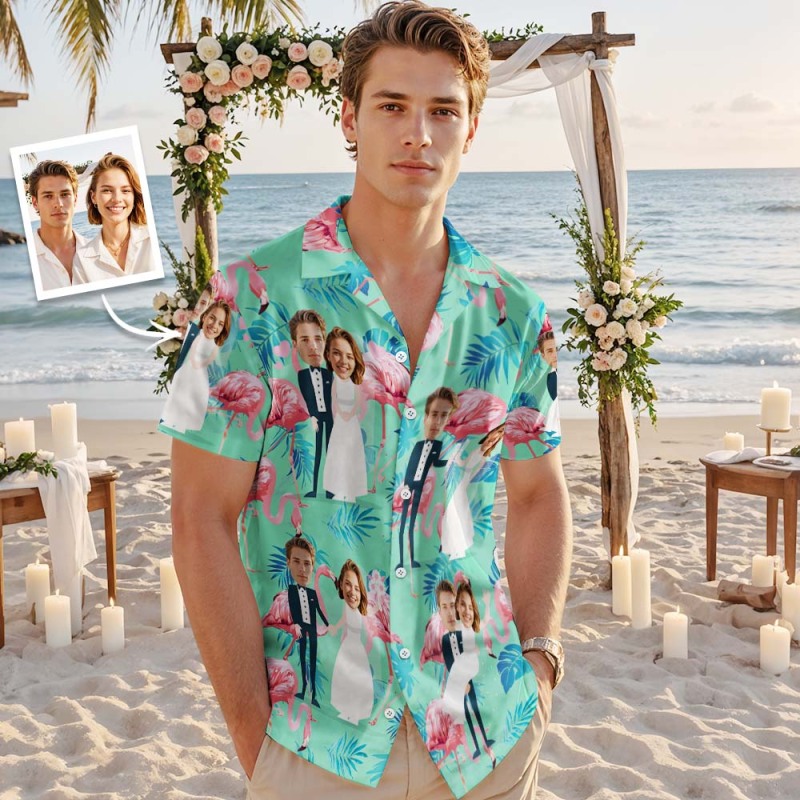 Chemise Hawaïenne Visage Personnalisé Mariage Flamingo Visage Chemise Hawaïenne Cadeau De Mariage