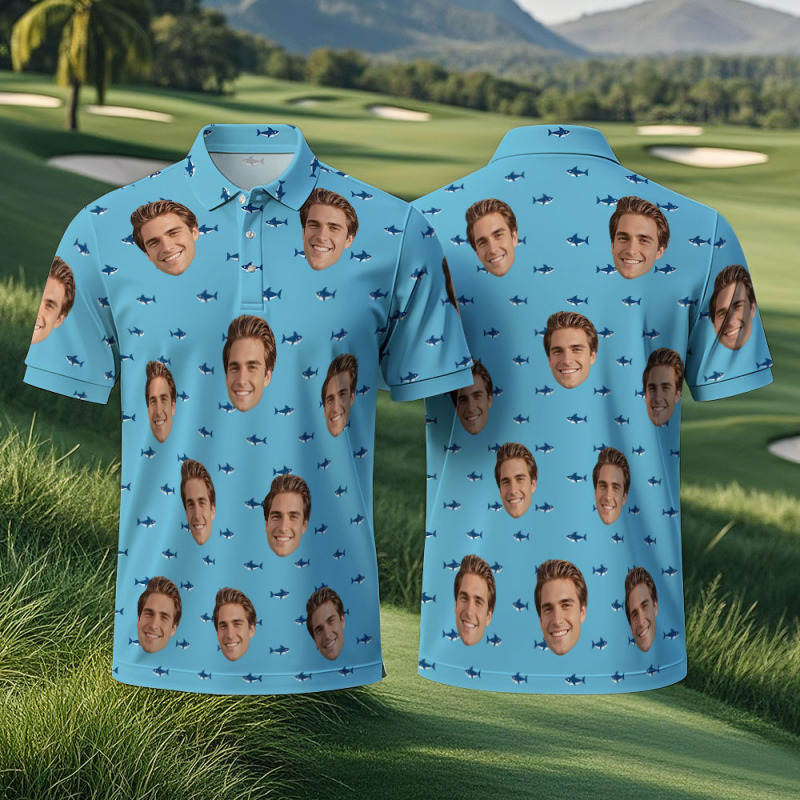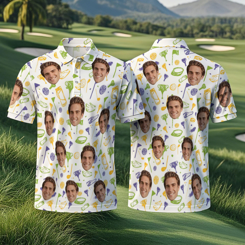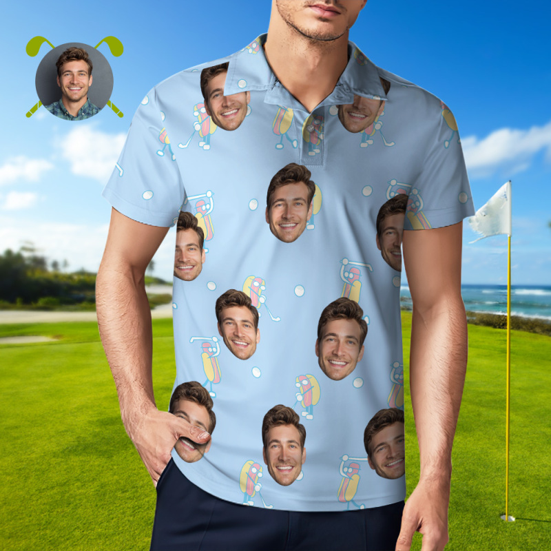 Polo De Golf Personnalisé Avec Visage Bleu Et Blanc, Motif Graffiti, Pour Homme, Cadeau
