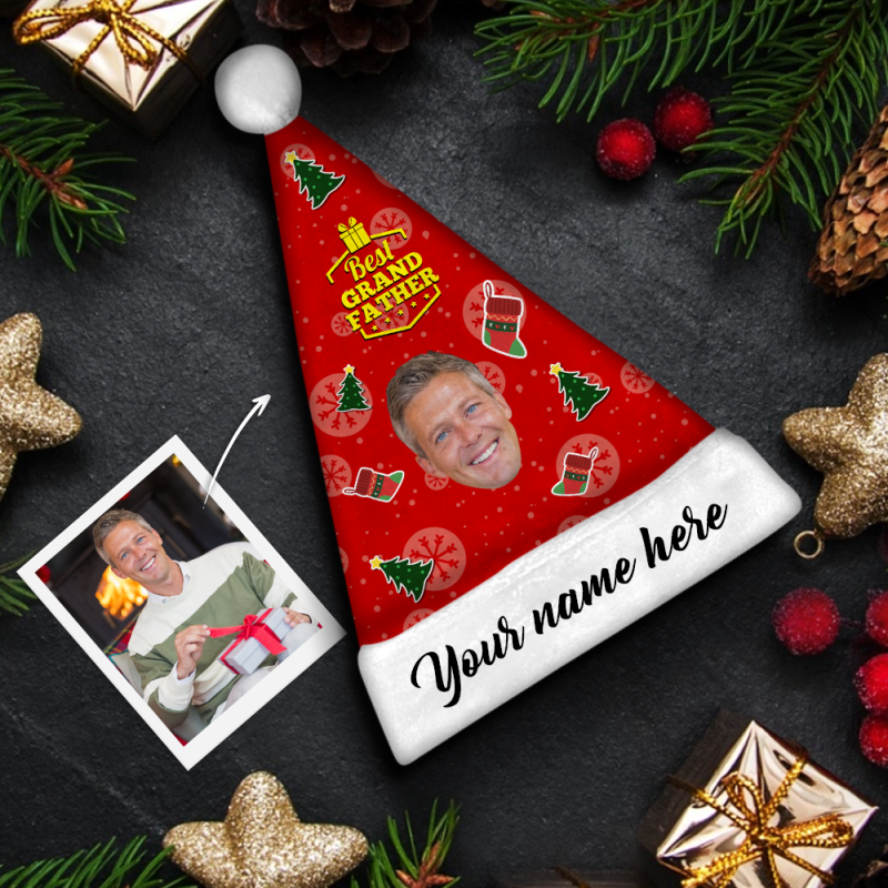 Chapeau Personnalisé de Visage et Prénom Noël Pour le Meilleur Grand-père