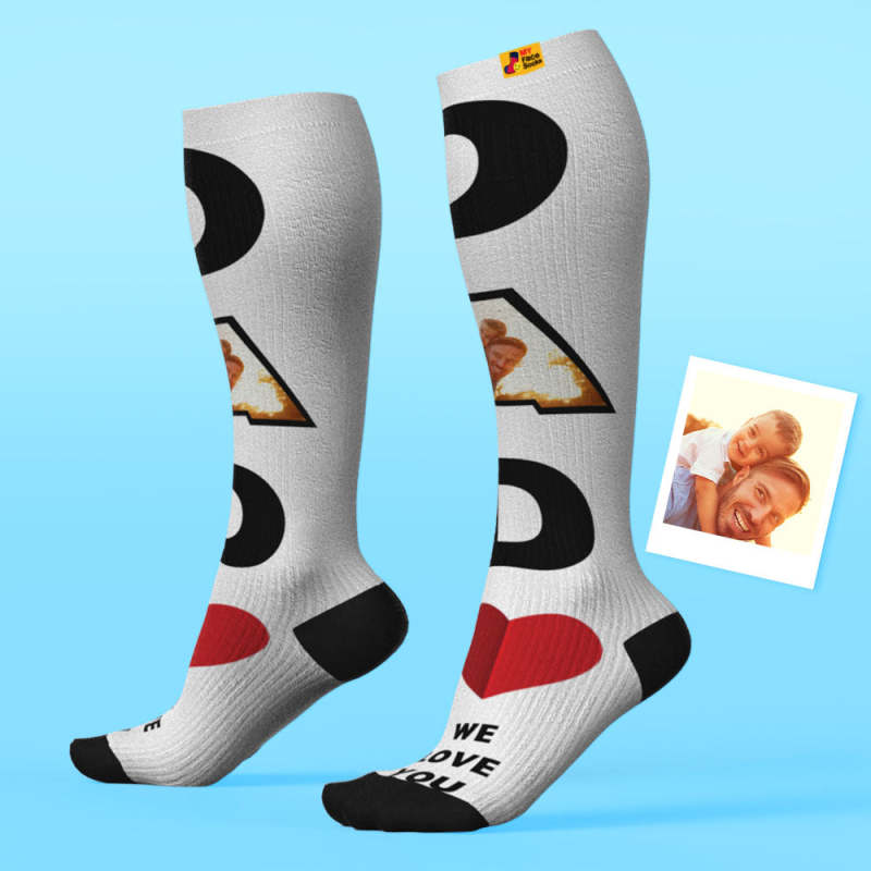 Mise À Niveau Des Chaussettes De Compression Respirantes Personnalisées À Hauteur De Genou Aperçu En Ligne Ajouter Une Photo Et Un Nom Dad
