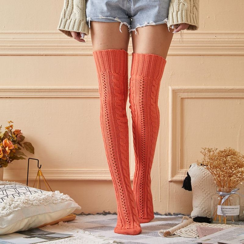 Femmes Hiver Jambières Tricoté Jacquard Bas Sur Le Genou Chaussettes Sol Chaussettes Pile Chaussettes